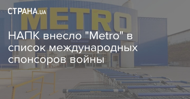 Національне агентство із запобігання корупції України внесло до переліку "міжнародних спонсорів війни" компанію Metro Cash & Carry через рішення керівництва компанії продовжувати діяльність у Росії.