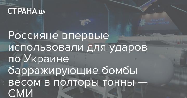Росіяни вперше використали для ударів по Україні бомби, що барражують, вагою в півтори тонни — ЗМІ
