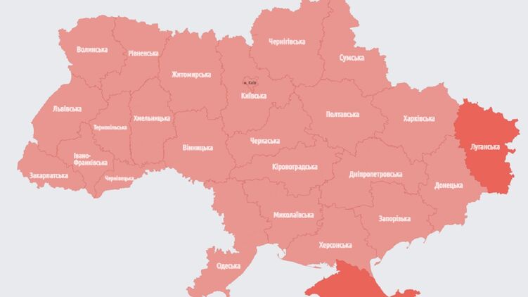 Станом на 14:15 повітряну тривогу оголошено у всіх регіонах країни.