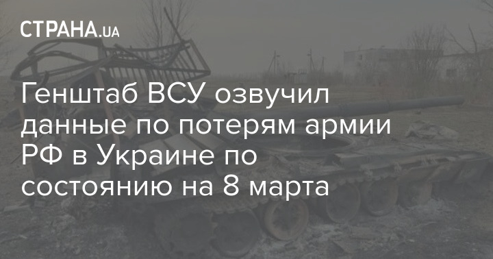 Генштаб ЗСУ озвучив дані щодо втрат армії РФ в Україні станом на 8 березня