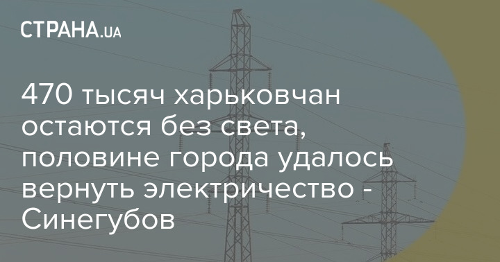 470 тисяч харків'ян залишаються без світла, половині міста вдалося повернути електрику - Синєгубов