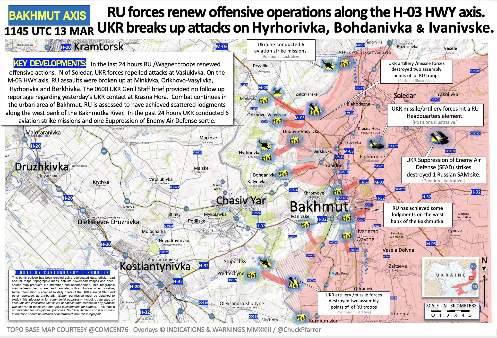 У російських військових джерелах заявляється, що ЗСУ планують контрнаступ після весняного бездоріжжя на Запорізькому напрямку як основному (тобто, на Токмак, Мелітополь та Бердянськ). А також допоміжними ударами або на Волноваху-Маріуполь, або на лівий берег Дніпра на Херсонщині, де росіяни залишили відносно невеликі сили, покладаючись на водяну заслінку.