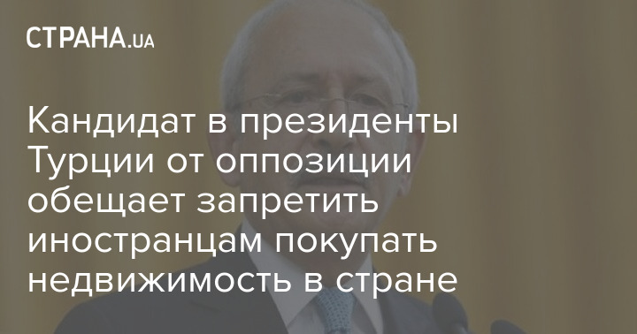 Кандидат від турецької опозиції на виборах президента країни Кемаль Киличдароглу у разі своєї перемоги обіцяє заборонити іноземцям купувати нерухомість у Туреччині протягом як мінімум 5 років.