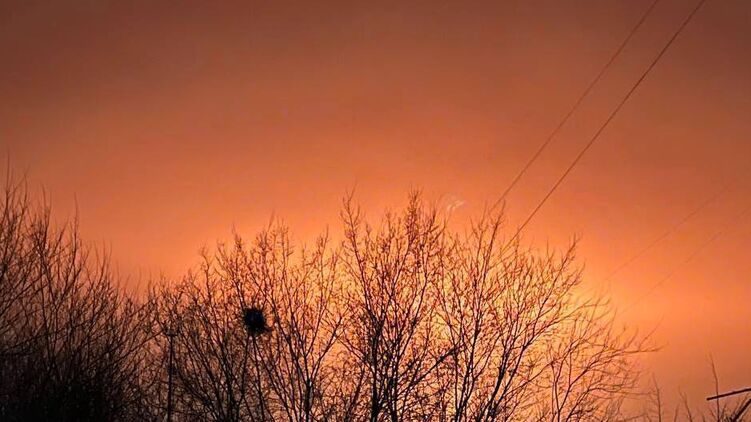 Заграва від пожежі на Дніпропетровщині після атаки дронів. Фото: Телеграм