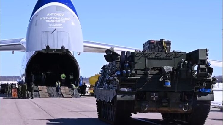 Крім того, міністр опублікувала відео, на якому видно завантаження бронемашини на борт українського вантажного літака Ан-124 "Руслан".