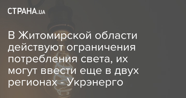 На Житомирщині у понеділок, 20 березня, через значні пошкодження мереж застосовуються обмеження споживання. Також можливі у разі зростання споживання обмеження у Києві та Київській області.