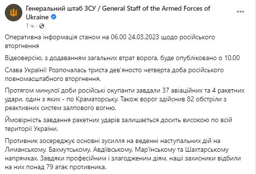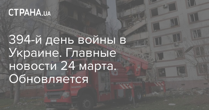 У п'ятницю, 24 березня, в Україні триває вже 394-й день війни з РФ.