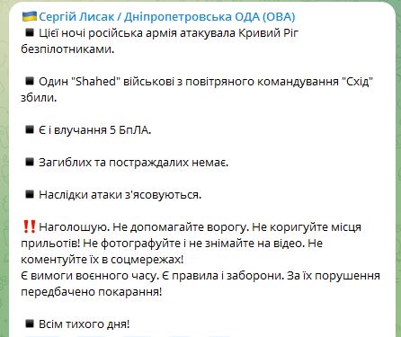 07.40 Подробиці атаки російських безпілотників Кривим Рогом.