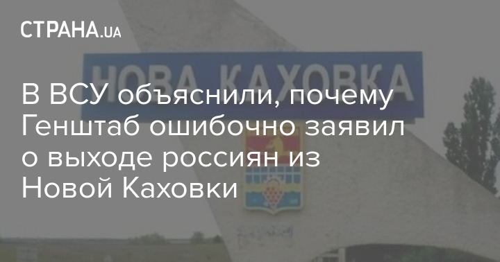У ЗСУ пояснили, чому Генштаб помилково заявив про вихід росіян із Нової Каховки (лівий берег Херсонської області).