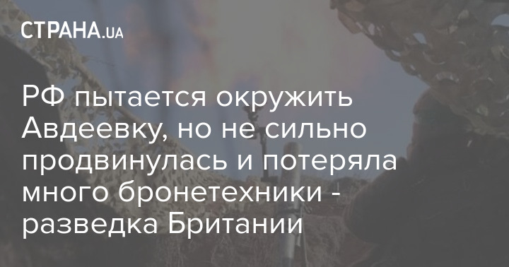 В останні дні Росія продовжує віддавати пріоритет операції з оточення Авдіївки Донецької області, але вона досягла лише незначного прогресу ціною великих втрат у бронетехніці.