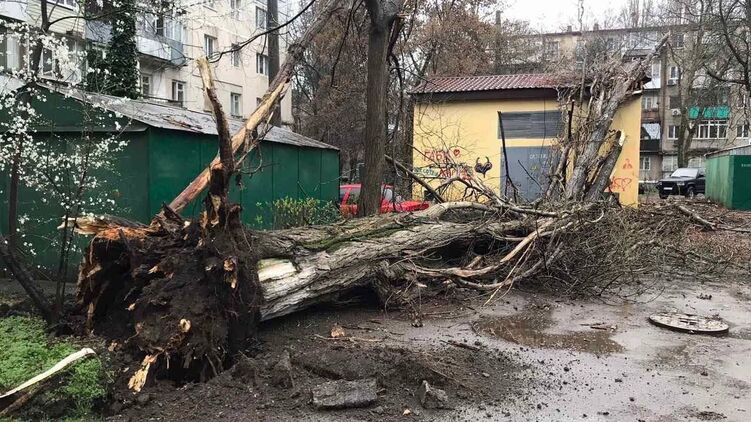 У вівторок, 28 березня, в Одесі сильні пориви вітру масово валять дерева та призводять до аварійних відключень електроенергії.