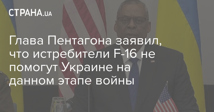 На цьому етапі війни винищувачі F-16 не допоможуть Україні, заявив міністр оборони США Ллойд Остін під час засідання Комітету Сенату збройних сил.