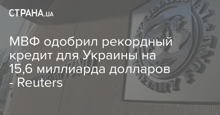 Міжнародний валютний фонд (МВФ) схвалив рекордний кредит Україні на 15,6 млрд. доларів.