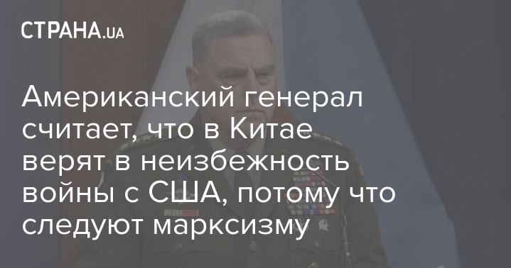 Голова комітету начальників штабів Пентагону Марк Міллі вважає, що в Китаї вірять у неминучість війни зі США.