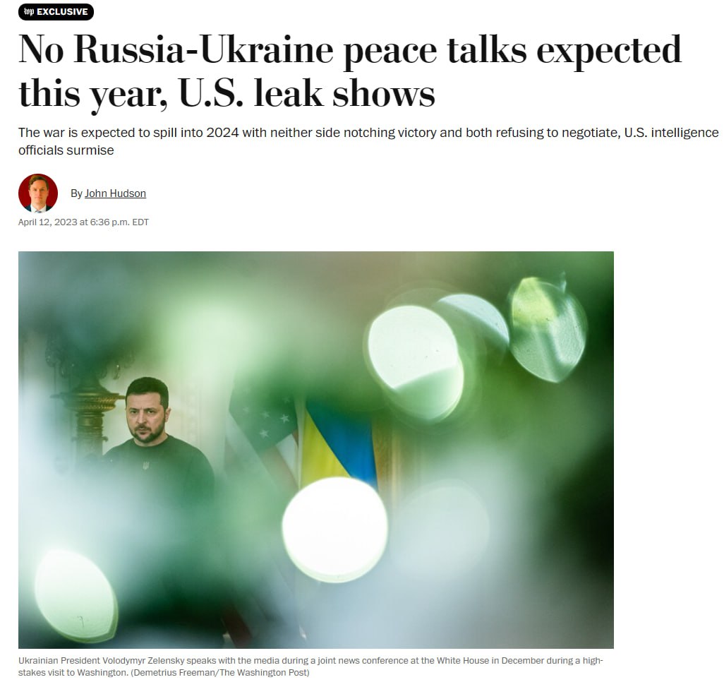"Очікується, що війна триватиме до 2024 року, і жодна зі сторін не досягне перемоги, і обидві сторони відмовляться вести переговори", - йдеться у статті з посиланням на секретні документи.