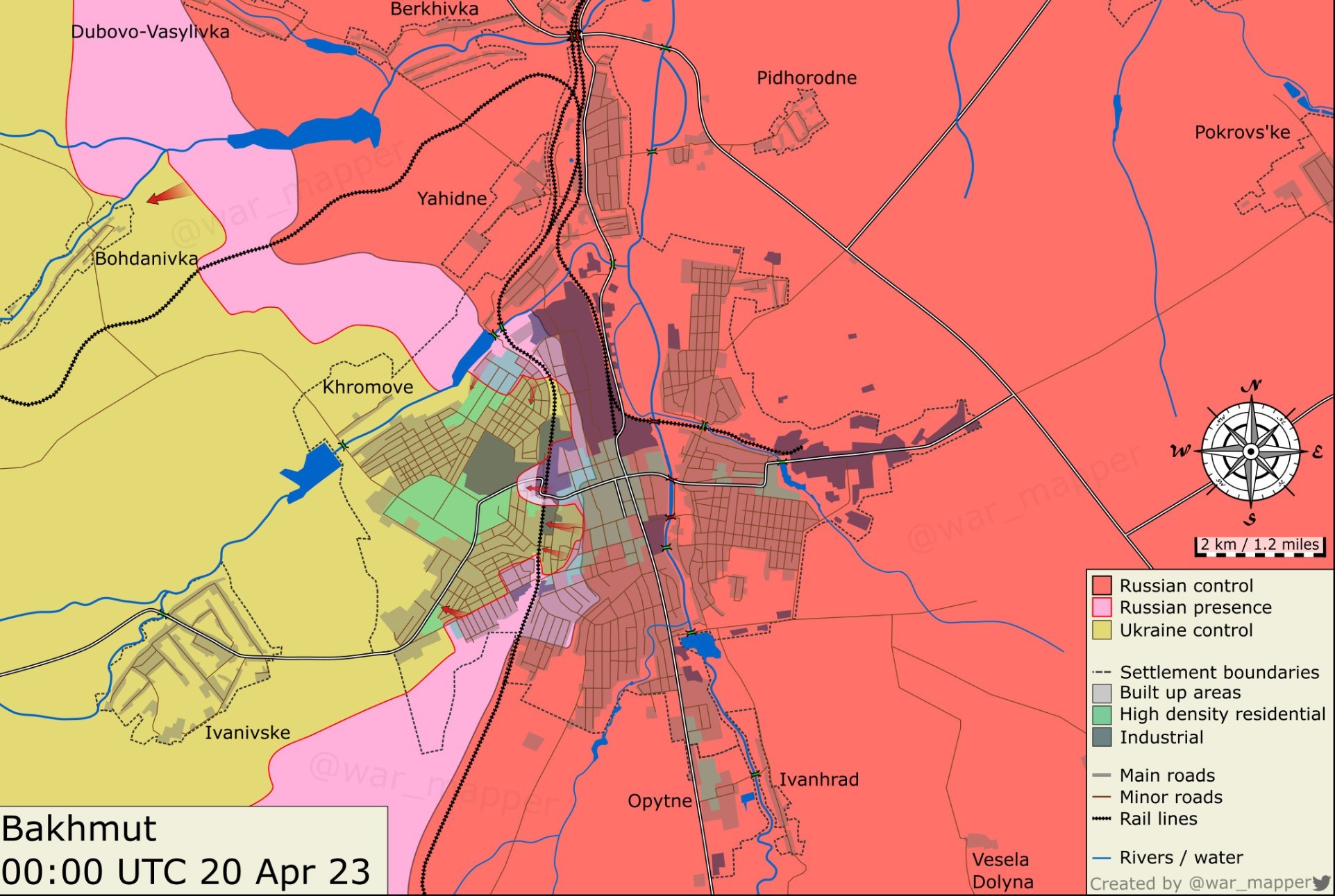 Крім того вони повідомляють і про те, що росіяни підійшли впритул до Хромова, через яку йде одна з двох трас, що залишилися під контролем ЗСУ, на Бахмут (Генштаб, як писалося вище, теж говорить про бої в районі цього населеного пункту, але успіхи противника тут не підтверджує).