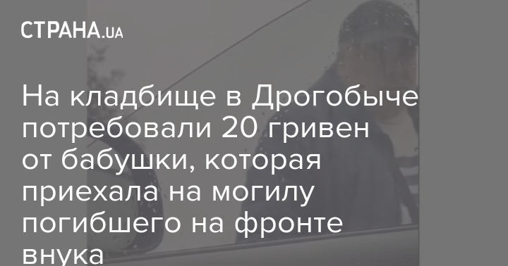 У Мережі з'явилося відео про те, як у місті Дрогобич, що на Львівщині, бабусю, яка приїхала на могилу онука, який загинув на фронті, охоронець відмовився пускати на цвинтар безкоштовно, вимагаючи за проїзд 20 гривень.