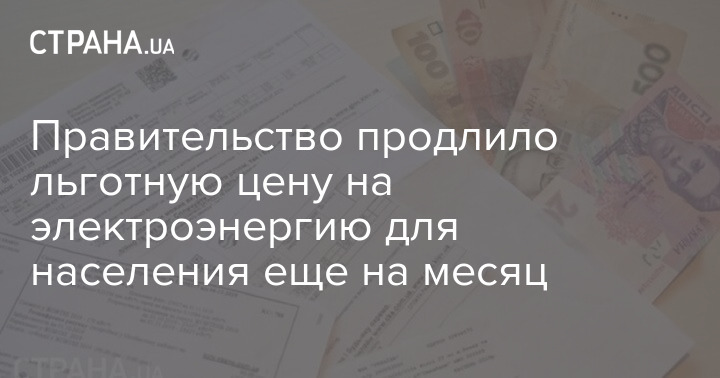 Кабінет міністрів України продовжив дію фіксованої ціни на електроенергію для населення в 1,44 грн/кВт-год та 1,68 грн/кВт-год залежно від споживання ще на місяць.