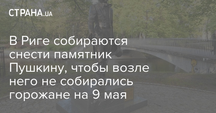 Ризька влада вирішила найближчим часом знести пам'ятник Пушкіну у Ризі, щоб не допустити зборів у нього городян на 9 травня.