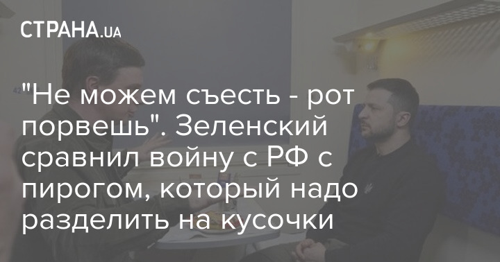 "Війна - як той пиріг - з Російською Федерацією. Ми не можемо її з'їсти - рота порвеш, велика країна за обсягом", - сказав Зеленський.