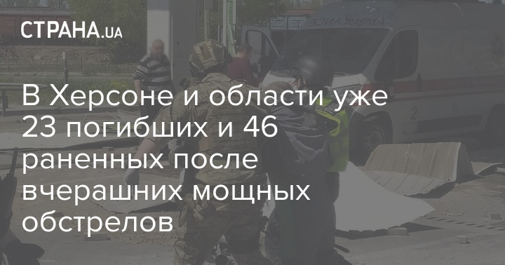 У Херсоні та області зросла кількість загиблих після вчорашніх інтенсивних обстрілів. За останніми даними Херсонської ОВА, за добу від обстрілів в області загинули 23 особи та 46 отримали поранення.