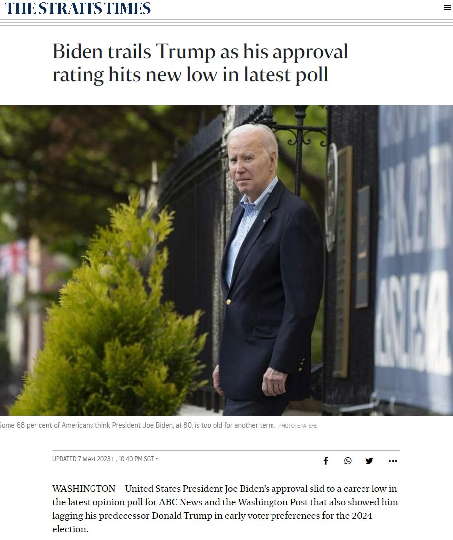 Нагадаємо, що раніше ми писали, що рейтинг схвалення Байдена становить 40%, і він дуже ризикує програти майбутні президентські вибори в США.