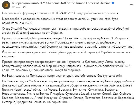 Подробиці про вчорашні події читайте у підсумках за 23 травня.