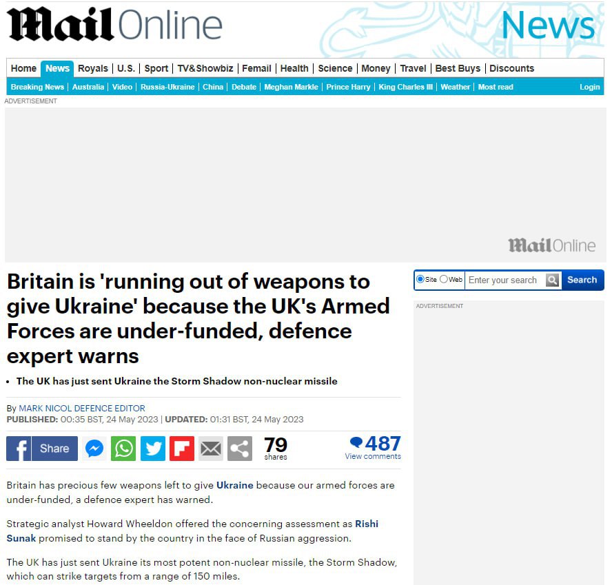 18:20 У Британії "закінчується зброя для передачі Україні", тому що британські Збройні сили недофінансуються, пише Daily Mail з посиланням на дані експерта з оборони Горварда Вілдона.