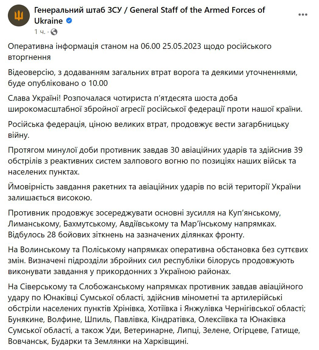 У четвер, 25 травня, в Україні триває вже 456 день війни з Росією.