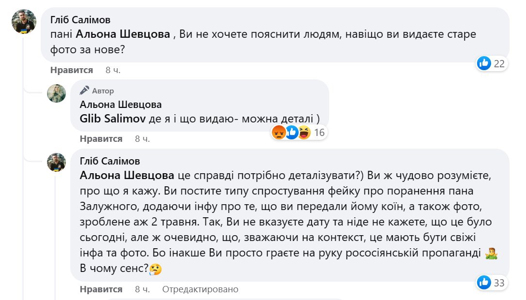 08.22 Волонтер Олена Шевцова, яка вчора опублікувала фото з головкомом Залужним, визнала, що воно не нове.