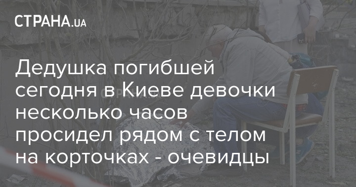 Очевидці повідомили, що дідусь, який загинув сьогодні у Києві дівчинки, кілька годин просидів поряд із тілом на вулиці. Він сидів навпочіпки, поки йому не принесли стілець.