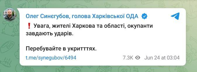 03:10 Удари по Харкову та області підтвердив голова Харківської ОВ Олег Синегубов.