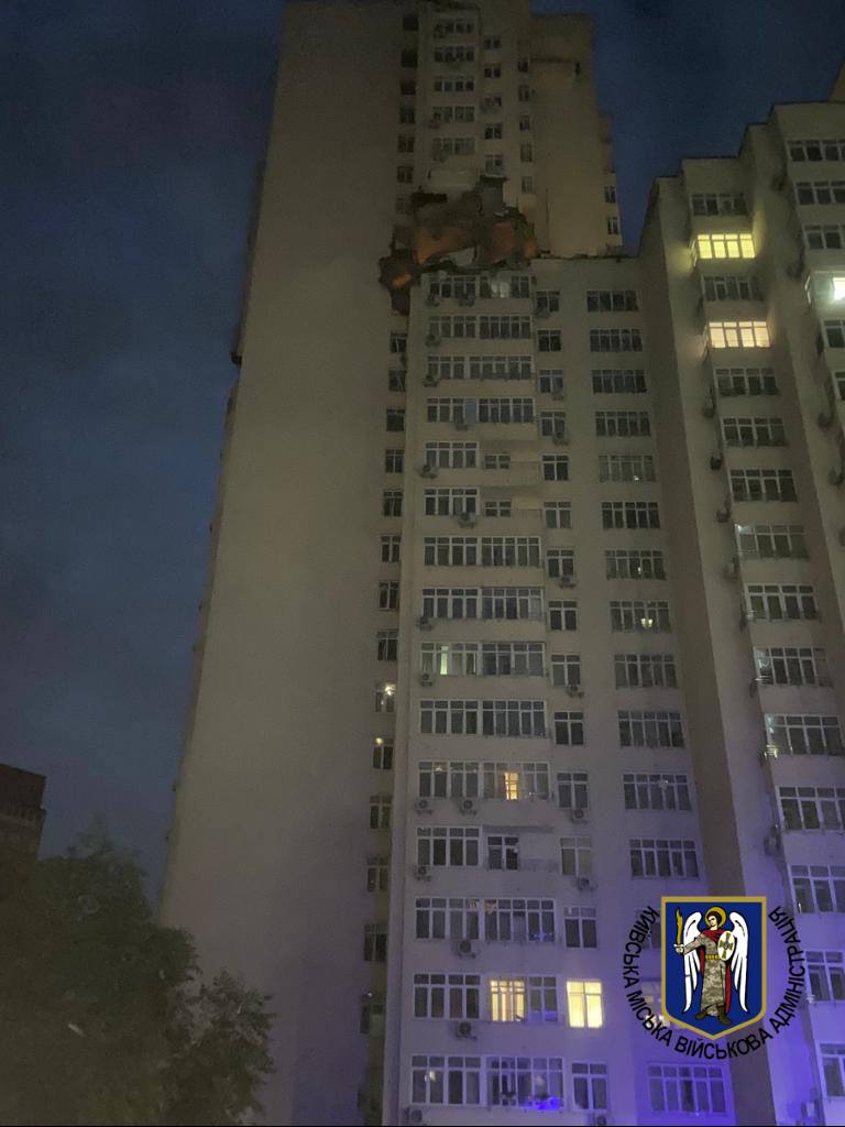 06:09 Через падіння уламків на 24-поверхову будівлю у Солом'янському районі Києва загинули двоє людей.