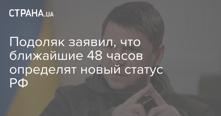 Радник глави Офісу президента України Михайло Подоляк заявив, що найближчі 48 годин визначать новий статус РФ. Про це він написав у своєму Twitter.