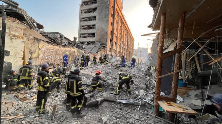 На ранок відомо про вісім загиблих після вчорашнього удару РФ, але розбір завалів зруйнованої будівлі та пошук людей, які, ймовірно, знаходяться під завалами, триває.