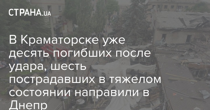 В Краматорську вже десять загиблих після удару, шість постраждалих у тяжкому стані направили до Дніпра