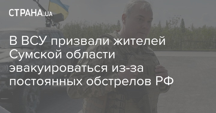 Командувач об'єднаними силами ЗСУ Сергій Наєв закликав жителів прикордонних районів Сумської області евакуюватися через постійні російські обстріли.