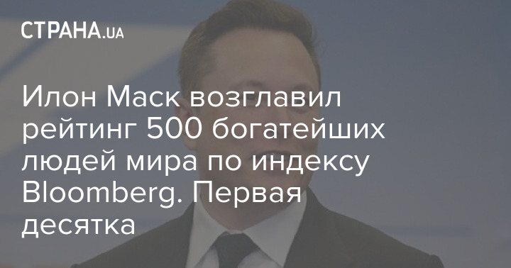 Американський бізнесмен Ілон Маск очолив рейтинг топ-500 найбагатших людей світу за індексом Bloomberg. Його статки досягли 234 мільярдів доларів.