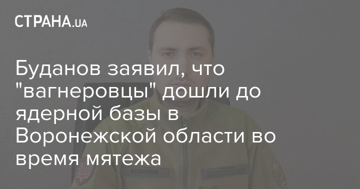 Буданов заявив, що "вагнерівці" дійшли до ядерної бази у Воронезькій області під час заколоту