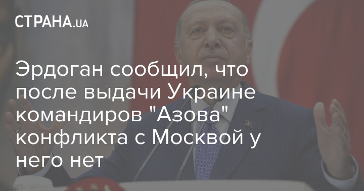 Президент Туреччини Реджеп Ердоган повідомив, що конфлікту з Москвою через видання Україні командирів "Азова" він не має.