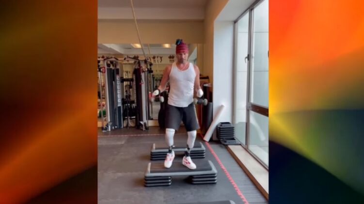 Олімпійський чемпіон із фігурного катання Роман Костомаров продовжує відновлення після кількох ампутацій. Він працює з тренажерами для розвитку м'язів рук та ніг.