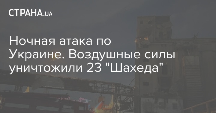 "Силами та засобами Повітряних Сил у взаємодії з протиповітряною обороною інших складових Сил оборони України знищено 23 ударні БПЛА", - йдеться у повідомленні.