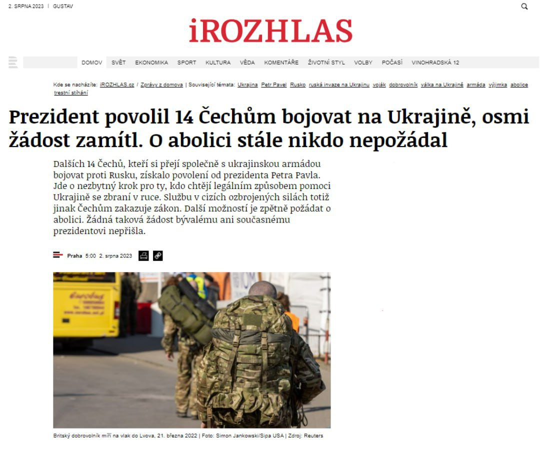 Президент Чехії дозволив 14 громадянам вступити до ЗСУ, щоб воювати проти РФ.