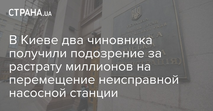 У Києві двоє чиновників отримали підозру за розтрату мільйонів на переміщення несправної насосної станції