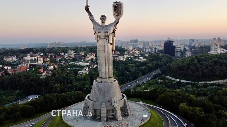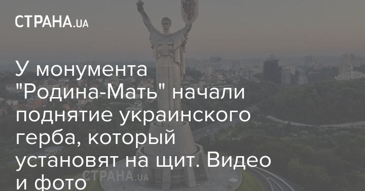 На щит "Батьківщини-Матері" встановлюють тризуб. Фото: "Страна"