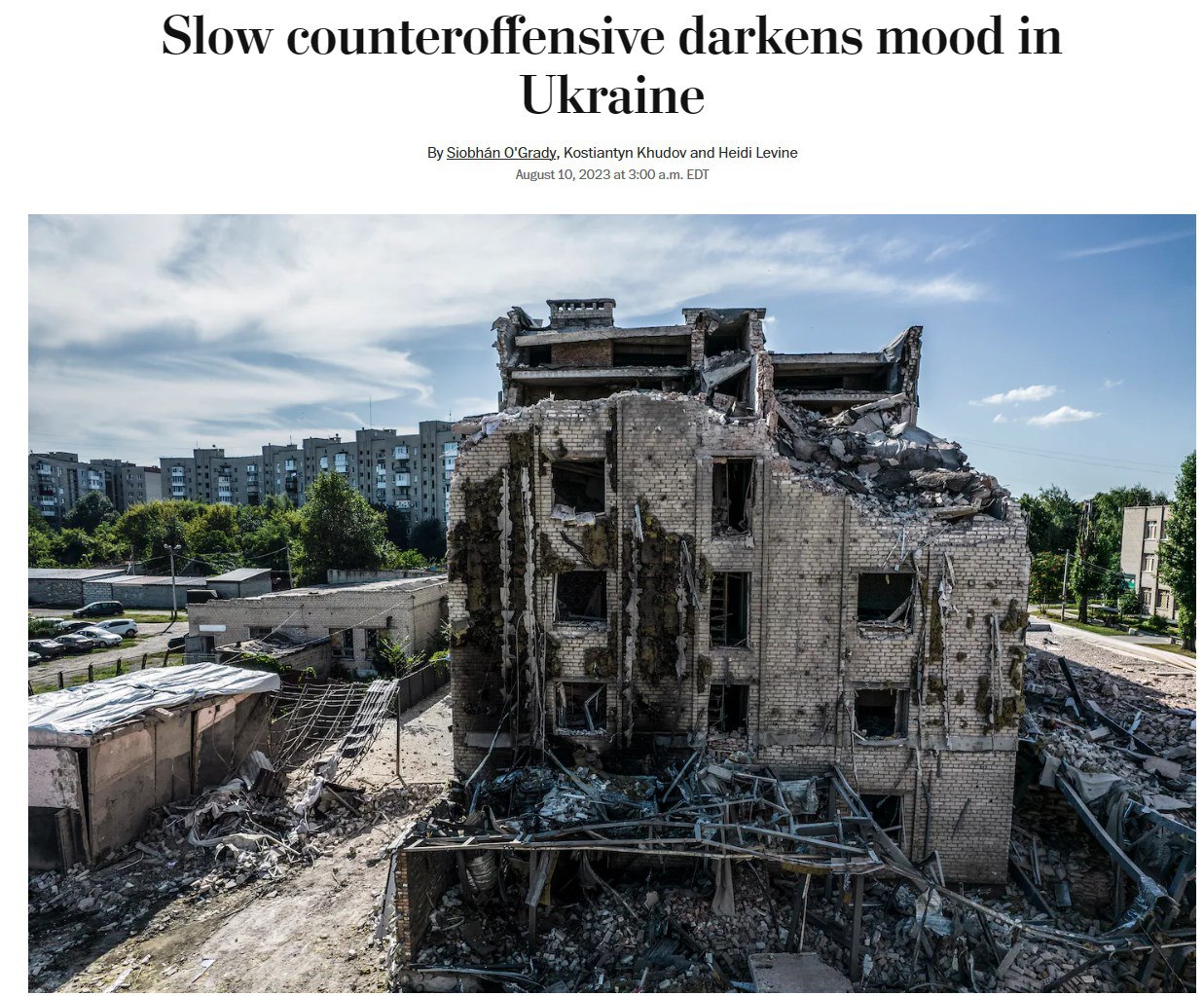 Повільний контрнаступ "затьмарює настрої" в Україні та викликає "почуття колективного розчарування".