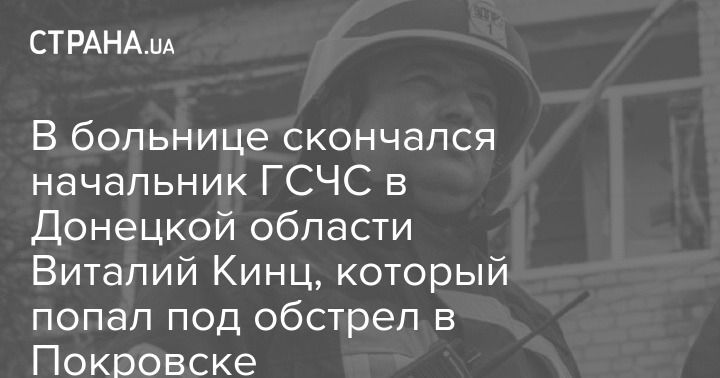 Сьогодні у лікарні помер начальник дев'ятого державного пожежно-рятувального загону Головного управління ДСНС Донецької області, полковник служби цивільного захисту Віталій Кінц, який отримав поранення під час ліквідації наслідків обстрілів у Покровську 7 серпня.