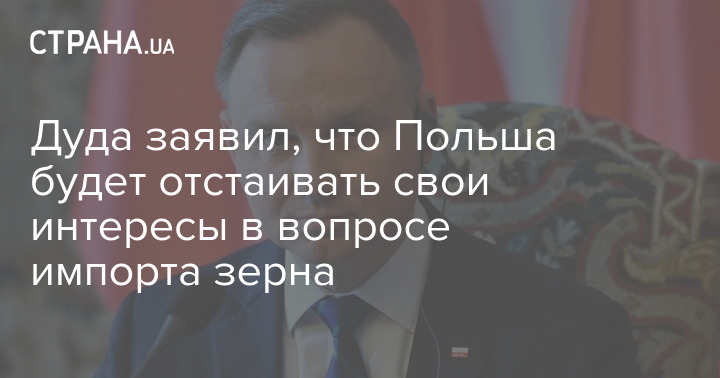 Дуда заявив, що Польща відстоюватиме свої інтереси щодо імпорту зерна
