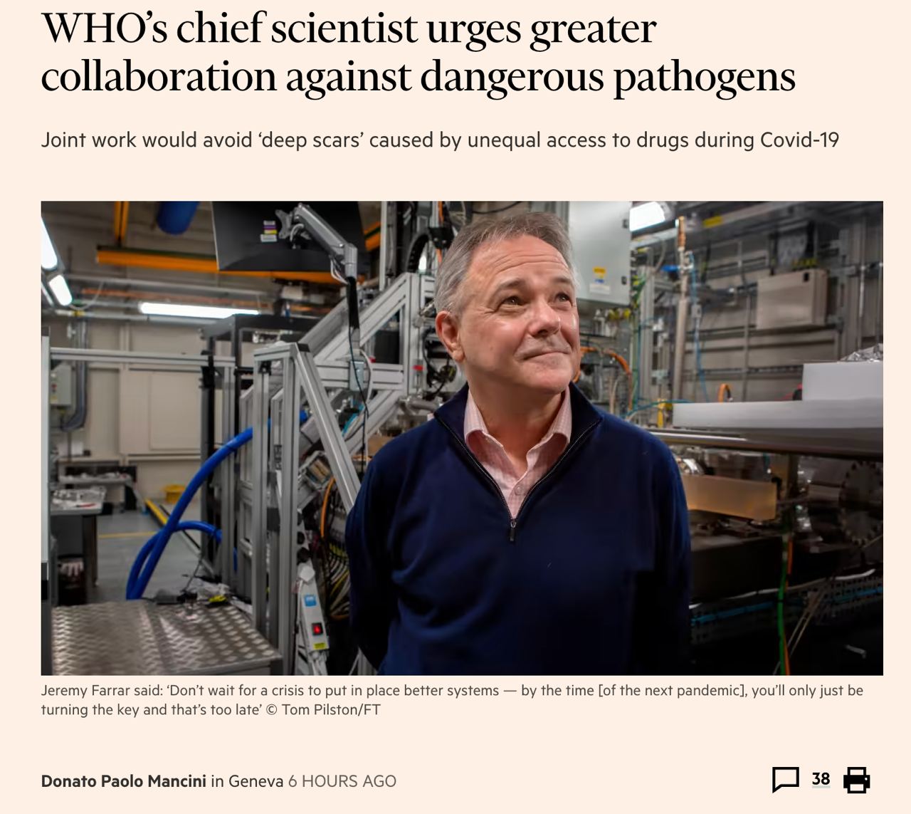 Фаррар підтримав організацію нової місії ВООЗ до Китаю, але якщо Пекін виявить "готовність поділитися всією інформацією".