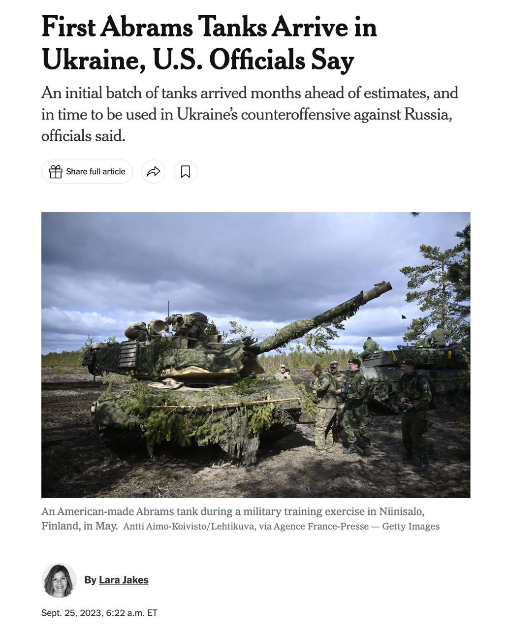14.12 Першу партію американських танків Abrams на вихідних було доставлено до України, пише New York Times з посиланням на джерела.